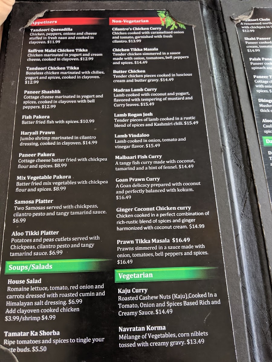 The dining atmosphere at Cilantro's is equally inviting. As customers have noted, the space is cozy, adorned with warm colors and lively music that creates an enjoyable ambiance for family dinners or casual outings with friends. The attentive service further enhances the experience, with staff members like Harman and Pradeep receiving praise for their warm hospitality and attention to detail. One guest shared their delight, stating, "Harman was our server, and she was absolutely amazing... made us feel so comfortable."